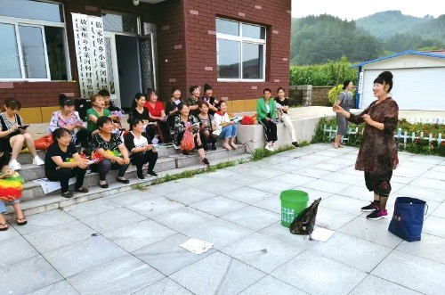 图为清原县敖家堡乡小莱河村妇代会为村民普及垃圾分类减量知识。